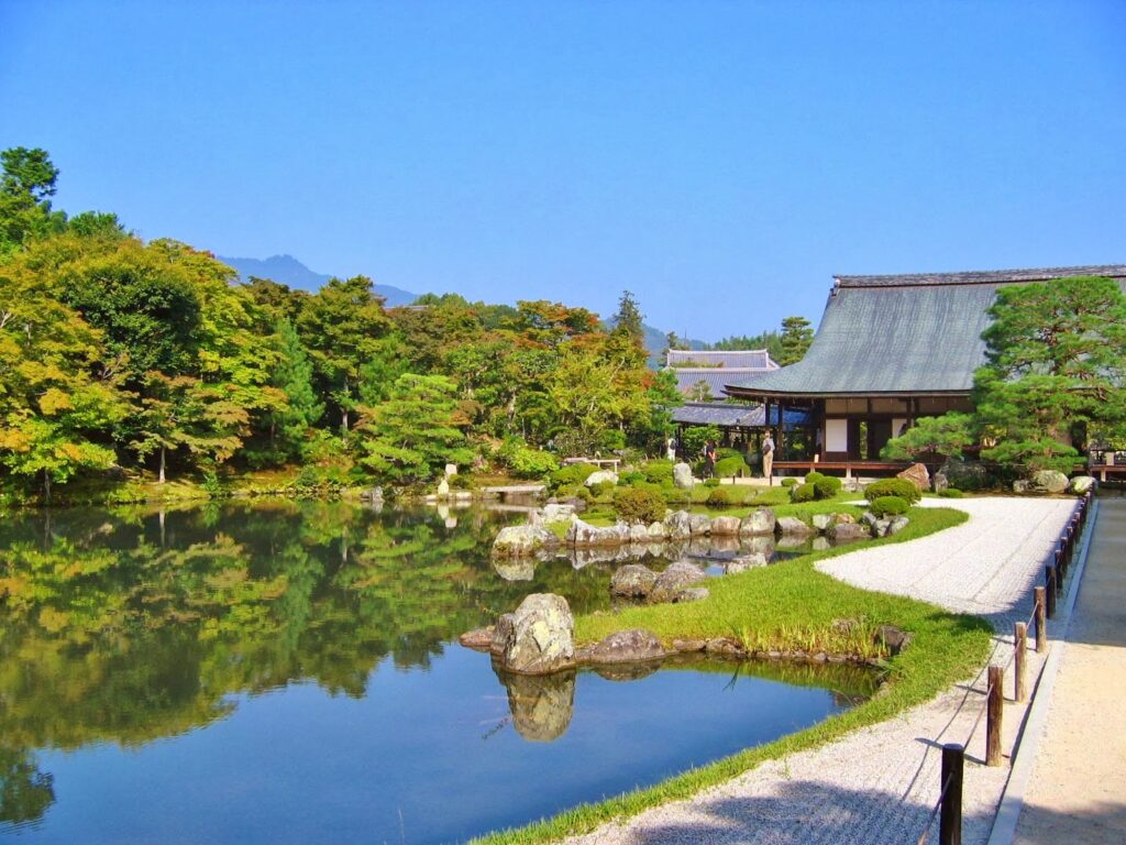 1.京都嵐山の借景と池泉回遊式庭園の美